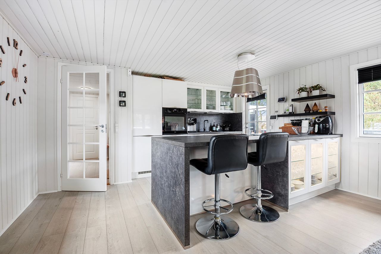 Dette særdeles velholdte fritidshus ligger på en skøn grund i det populære Vejers og fremstår i flot stand – tydeligt præget af, at nuværende ejer har passet og plejet huset med stor omhu. Huset har aldrig været udlejet, og det kan man tydelig mærke. Boligen byder på et flot Vordingborg-køkken, som ligger i åben forbindelse med spiseplads og den hyggelige stue. Her skaber både brændeovn og varmepumpe en behagelig temperatur året rundt samt en varm og indbydende stemning. Fra opholdsrummet er der adgang til skønne udearealer med både en smeget stor lukket træterrasse og en mindre overdækket træterrasse hvor udelivet kan nydes i læ og ro – perfekt til lange sommeraftener og hyggelige stunder med familie og venner. Huset rummer tre værelser, hvoraf to er særdeles rummelige og giver god plads til både familie og gæster. Badeværelset fremstår pænt og funktionelt, og derudover findes en praktisk garderobe med god plads til overtøj og sko.